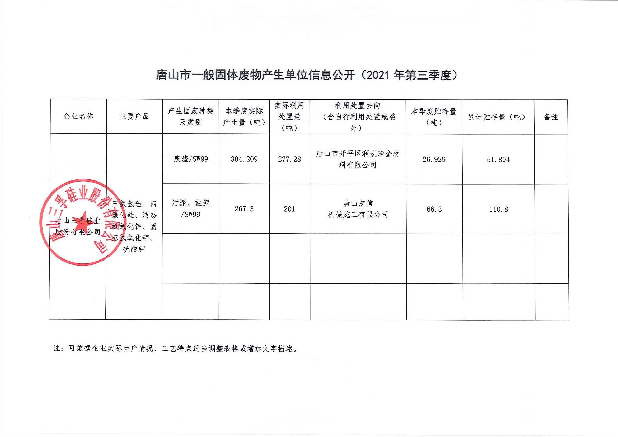 唐山三孚硅業股份有限公司 一般固廢 三季度信息公開